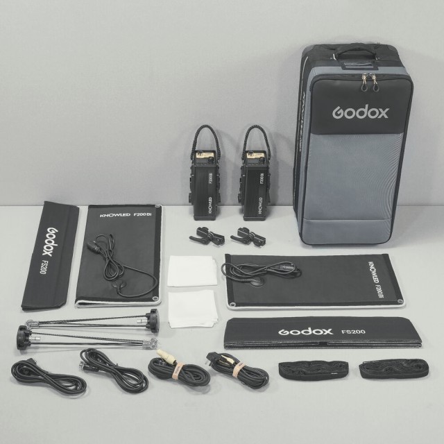Komplet F200Bi K2 dolazi s softboxovima i uklonjivim rešetkama za profinjeno oblikovanje svjetla, X-nosačima i držačima adaptera za sigurnu montažu, kontrolerima/napajačima, priključnim i napajnim kabelima te podstavljenom torbom za jednostavno putovanje. S vrhunskom kvalitetom izrade, preciznim izlazom i neusporedivom prilagodljivošću, Godox KNOWLED F200Bi K2 komplet je vrhunski sustav rasvjete za profesionalce kojima je potrebno robusno, fleksibilno i visokoučinkovito LED rješenje.