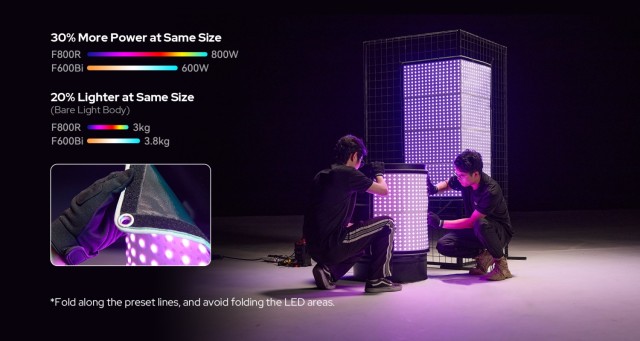 Izrađen za stvarna produkcijska okruženja, F100R ima IP54 otpornost na vremenske uvjete, štiteći i svjetlosnu podlogu i kontroler od prašine i prskanja vode, što ga čini prikladnim i za studijsko i za snimanje na otvorenom. Novo nadograđeni metalni X-nosač poboljšava izdržljivost, a istovremeno omogućuje lakšu ugradnju u skučenim prostorima.