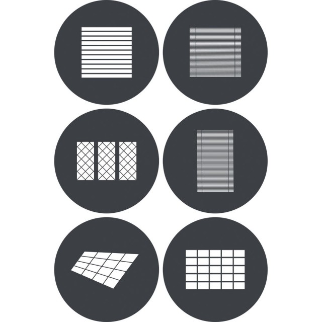 Godox Knowled GP-GS4 GOBO set uključuje šest čeličnih goboa od 148 mm dizajniranih za MG1200Bi Spotlight Attachment , omogućujući razne uzorke za kreativnu projekciju u kazalištu, filmu, modi ili fotografiji.