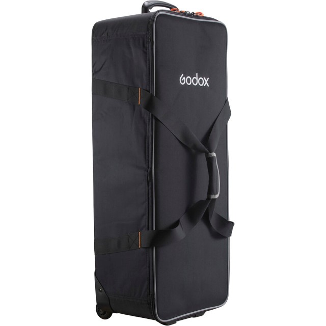 Komplet se napaja putem izmjenične struje ili opcionalnih V-mount baterija, što ga čini prikladnim i za studijsko i za snimanje na terenu. Sigurnosne značajke uključuju traku za fiksiranje i žičano uže za sigurno postavljanje. Sva tri svjetla dolaze s čvrstim stalcima za svjetla, reflektorima, adapterima za napajanje i zaštitnim poklopcima. Priložena tvrda torba za nošenje Godox CB-06 s kotačima održava cijeli vaš komplet organiziranim i prenosivim, s dodatnim džepovima za mali pribor i prozirnim prozorčićem za identifikaciju.