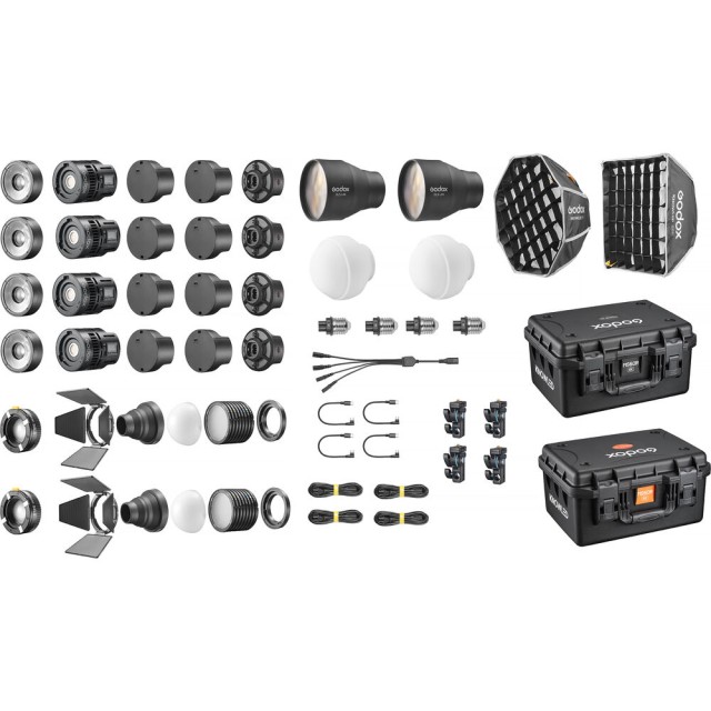 Godox Knowled MS60BI komplet s 4 svjetla (MS60BI 4K) kombinira prenosivost, snagu i svestranost u kompletnom dvobojnom LED rješenju za rasvjetu. Svako svjetlo MS60BI od 60 W isporučuje 17.400 luksa na 3,3' (5600K) i pokriva puni raspon temperature boje od 2800–6500K, pružajući precizno osvjetljenje od dnevnog svjetla do volframa s CRI 97 i TLCI 98. Idealan za film, emitiranje, fotografiju i događaje uživo, komplet uključuje dva DL5 Lite pojačivača snopa, dvije sklopive difuzijske kupole, softboxove, leće, vratašca i mlaznice za svjetlo, što omogućuje precizno oblikovanje svjetla.