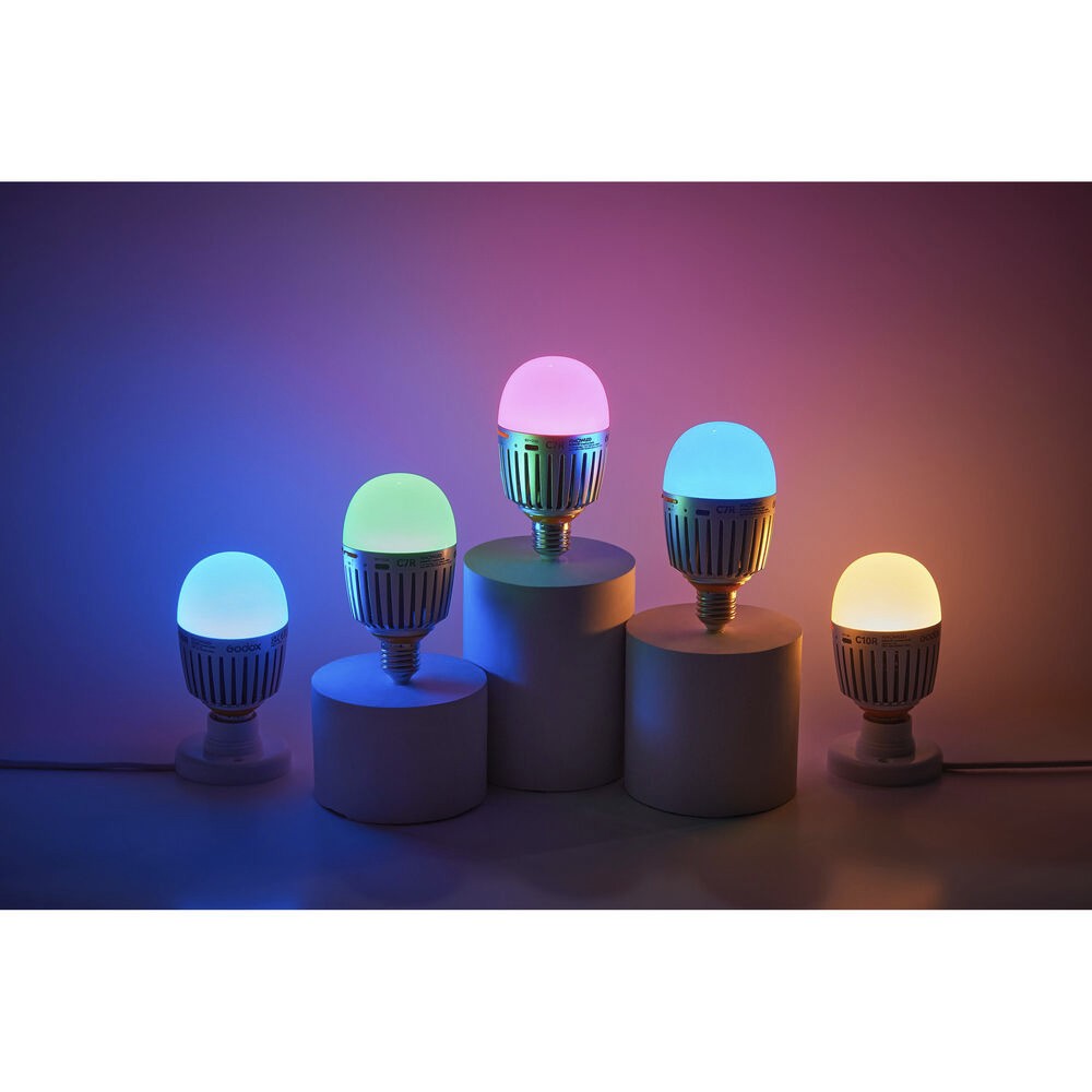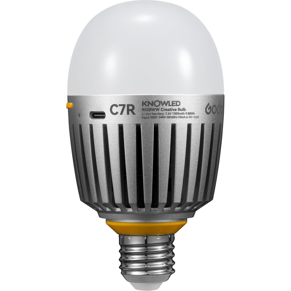 Godox C7R RGBWW kreativna žarulja (verzija na baterije) je svestrana, potpuno prilagodljiva LED žarulja s ugrađenom baterijom i USB-C opcijama napajanja. Pruža visokokvalitetne boje s CRI 96 i TLCI 98, nudi RGB, HSI i 2000–10 000K CCT načine rada, kontinuirano zatamnjivanje i Bluetooth upravljanje putem Godox Light aplikacije - savršeno za dinamično osvjetljenje na bilo kojem setu ili kreativnom projektu.