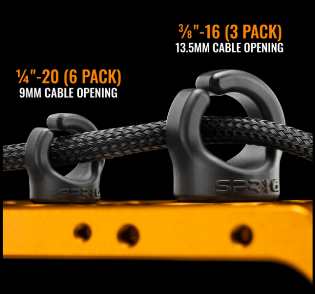 Sprig je brizgan od čvrstog i fleksibilnog materijala kako bi se stvorila kuka za kabel koja će preživjeti na setu i neće puknuti pod pritiskom. Promjer rupe za kabel je 0,53".