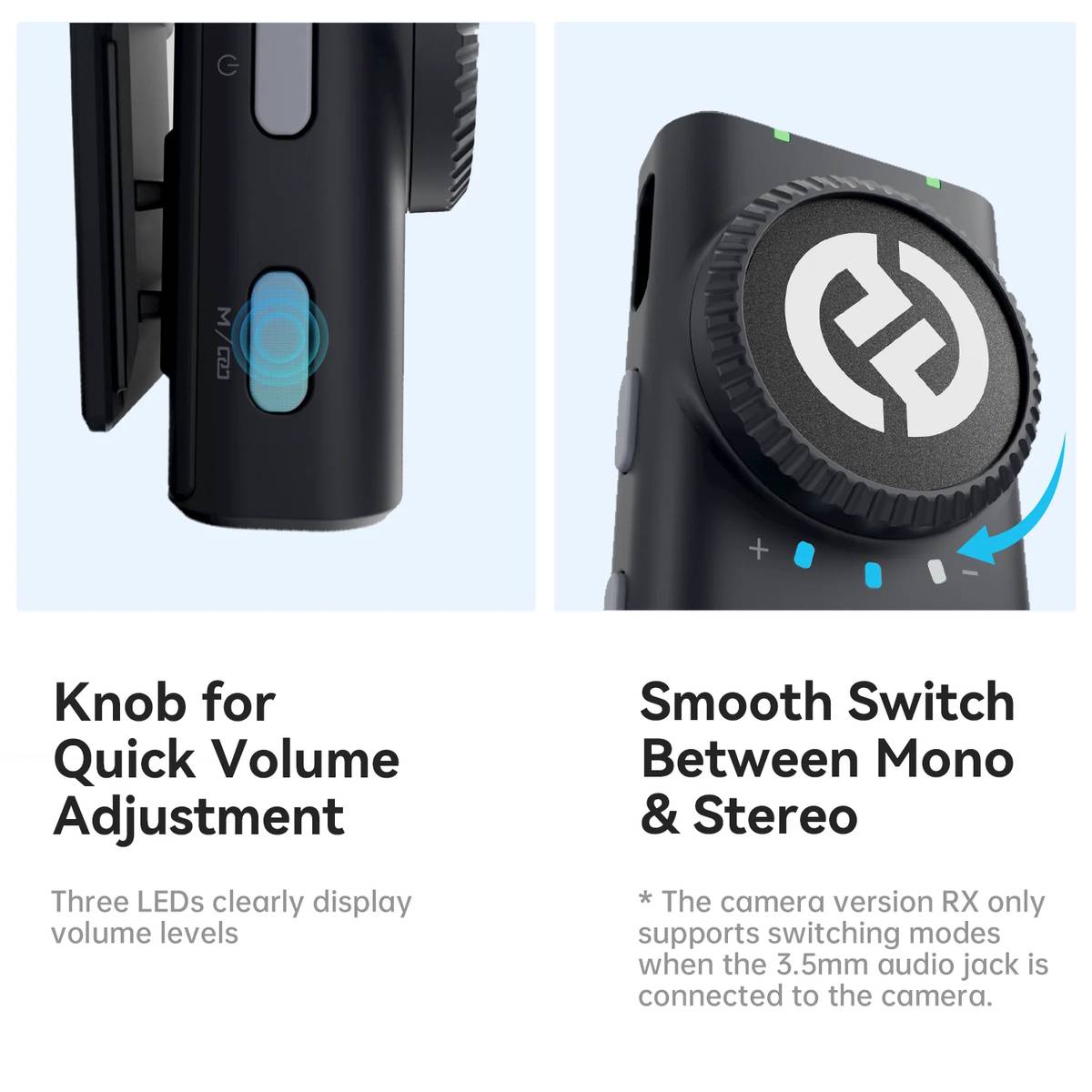 Komplet LARK M2 uključuje bežični mikrofon na preklop težak samo 9 grama za filmaše, vlogere i podcastere. Dovoljno je malen i lagan da se može udobno, sigurno i diskretno pričvrstiti na bilo koju odjeću.