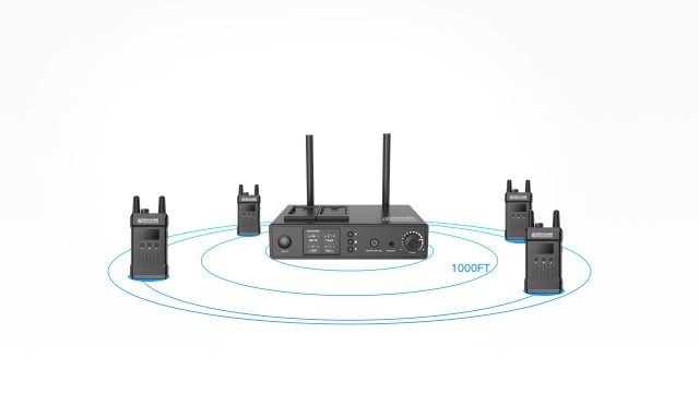 Pristupačan, fully duplex digitalni bežični komunikacijski sustav s dometom od približno 300 m i autonomijom baterije (1600 mAh) do 8 sati. Set uključuje jednu baznu stanicu, četiri beltpacka, pet antena, isto toliko slušalica, kablove i punjač. Pristupačna alternativa profesionalnom sustavu Syscom T1000 . Idealno za realizaciju manjih sportskih ili kulturnih događanja, predavanja i sl.