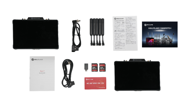 Hollyland Pyro 7 je 7-inčni bežični monitor koji integrira funkcije TX, RX i monitora, sve u jednom. Koristi tehnologiju automatskog dvopojasnog skakanja (ADH). S 1300 stopa (400 m) i nevjerojatno niskom latencijom od samo 60 ms, Pyro 7 podržava dvopojasni prijenos od 2,4 GHz/5 GHz i automatsko skakanje frekvencije. Njegov izniman hardverski dizajn omogućuje Pyro 7 istovremeno povezivanje jednog odašiljača s četiri prijamnika, a pogodnost praćenja s dvije kamere postiže se prilagodljivim tipkama prečaca. Dodatno, nadograđeni sustav HollyOS pruža poboljšane mogućnosti analize slike i omogućuje izvoz video datoteka putem vanjske SD kartice. Pyro 7 je kompatibilan s Pyro H i Pyro S, što znači da možete jednostavno upariti Pyro 7 s Pyro H ili Pyro S. To vam pruža veću fleksibilnost i skalabilnost kako biste zadovoljili različite potrebe praćenja.