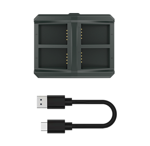 Hollyland Solidcom C1 kućište za punjenje baterije s 4 utora i USB Type-C sučeljem, dizajnirano za punjenje do četiri baterije slušalica Solidcom C1 istovremeno. Kompatibilan sa baterijama serije Solidcom C1.
