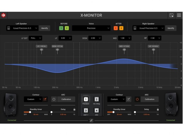 Monitori iLoud Precision dolaze s X-MONITOR - novorazvijenom naprednom kontrolnom aplikacijom za Mac i Windows. Ovo pomaže kod ARC kalibracije i omogućuje napredne akustične postavke prostora i prilagodbe za fino podešavanje iLoud Precision prema vašem ukusu. U isto vrijeme, nudi praktičan daljinski pristup postavkama na stražnjoj ploči monitora. Softver je plug-n-play putem jednostavne USB veze bez potrebe za posebnim postavkama na računalu.