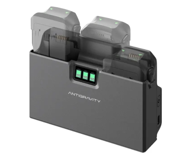 Hub također funkcionira kao power bank, omogućujući vam punjenje telefona, daljinskog upravljača ili drugih USB-C uređaja na terenu. Lagan i kompaktan (133 × 36,8 × 93 mm, 117 g), lako stane u ruksak ili torbu s opremom. S podrškom za USB-C PD/PPS, uzastopnim punjenjem i mogućnošću korištenja kao prijenosni izvor napajanja, ovaj punjač pojednostavljuje upravljanje baterijama i osigurava maksimalnu spremnost za let vašeg drona Antigravity A1.