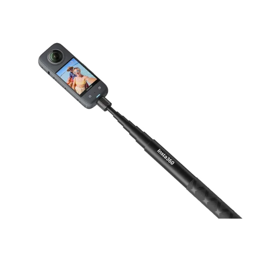 Insta360 selfie stick (INST110-17) ima podesivu duljinu od 23,3 cm do 114 cm, laganu aluminijsku konstrukciju i standardni vijak od 1/4". Automatski je nevidljiv u snimkama kada se koristi s Insta360 kamerama.