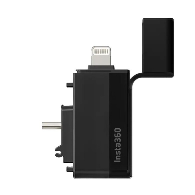Uređaj ima Plug-And-Play modul koji omogućuje izravno povezivanje s telefonom i prijenos datoteka bez korištenja Wi-Fi-ja. Kompatibilan je s operativnim sustavima iOS i Android. Kada je spojen na kameru , funkcionira kao vanjski, odvojeni memorijski modul na kojem će se videozapisi i fotografije spremati izravno tijekom snimanja. Povežite čitač s telefonom ili tabletom pomoću USB-C konektora i uređujte datoteke izravno u aplikaciji Insta360.