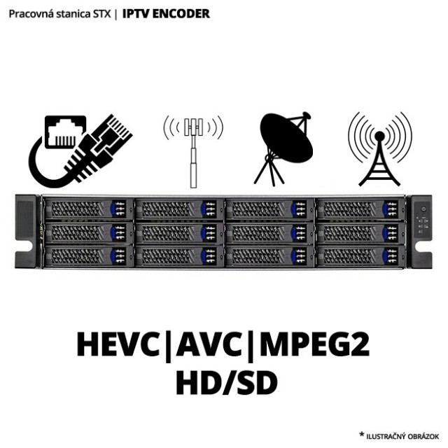 Profesionalna stanica za kodiranje videa u HD IQS HEVC/AVC/MPEG2 format za televiziju i kabelske operatere. Izlazni kodek je transportni tok (TS), HD HD HEVC/AVC/MPEG2 1 izlazni tok). Podrška za UDP (unicast/multicast), HTTP Live Streaming, RTSP, RTMP protokole.