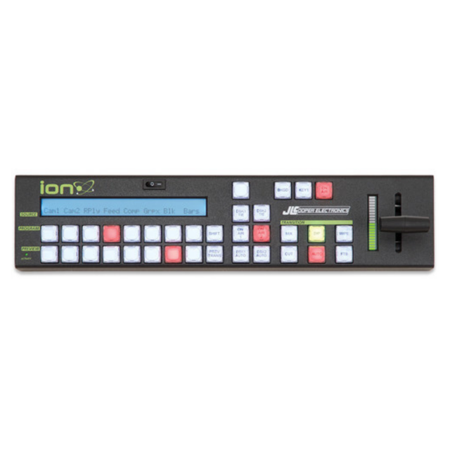Ion Broadcast Switcher Panel tvrtke JLCooper hardverska je upravljačka ploča za brzo prebacivanje videa u produkcijskom okruženju uživo s Blackmagic Design ATEM prekidačima. Kompatibilan je sa softverom ATEM i može se koristiti s prijenosnim ili stolnim računalom. Također možete koristiti prekidačku ploču kao samostalnu jedinicu s ATEM-om kao primarnim ili sekundarnim kontrolerom. Može se montirati na stalak pomoću ionskih ušica za stalak (prodaju se zasebno).