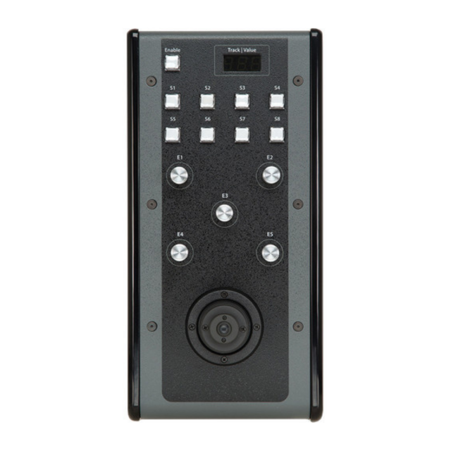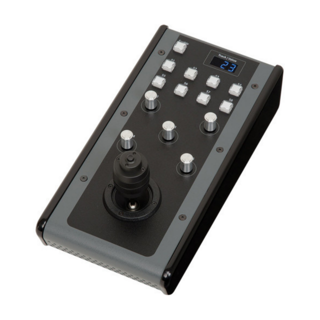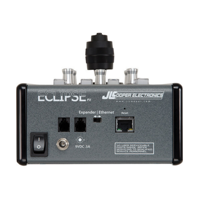 JLCooperov Eclipse PX Surround Panning Joystick Controller kombinira visokokvalitetni 3-osni joystick s 5 senzora za dodir, gumbe, rotacijske senzore, 9 tipki s pozadinskim osvjetljenjem i 3-znamenkasti bijeli LED zaslon za prikaz broja zapisa.