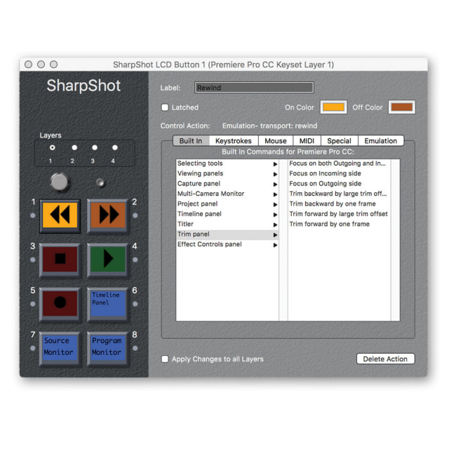 SharpShot Command Palette, koja integrira grafički LCD zaslon s RGB pozadinskim osvjetljenjem, može prikazati do 64 boje i dolazi sa softverskom kontrolom sučelja, zaslona i pozadinskog osvjetljenja. Nudeći trenutnu reprodukciju i kontrolu zvuka ili videa, kontroler je prikladan za automatizaciju emitiranja, postprodukciju i druge specijalizirane aplikacije. Upravljačka jedinica također vas upozorava na promjenu uvjeta rada prikazom u 8 različitih boja. Uz prilagođeno korisničko sučelje, kontroler SharpShot nudi fleksibilnu kontrolu i brz rad uz smanjenje ljudske pogreške.