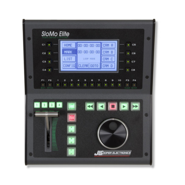 SloMo Elite-C kontroler tvrtke JLCooper je kontroler video poslužitelja s Ethernet i USB 2.0 sučeljima. Ova kompaktna verzija je 33% manja od SloMo Elite kontrolera i dizajnirana je za programere softvera i proizvođače originalne opreme. Kontroler SloMo Elite-C dizajniran je za usporene aplikacije kao što su sport, emitiranje, bijela ploča i trenutna reprodukcija. Sadrži 10-bitni T-bar s Hallovim efektom, kotačić za trčanje i 4,5" x 2,5" grafički zaslon s pozadinskim osvjetljenjem. Istovremeno se može kontrolirati do četiri video poslužitelja ili jedinice.