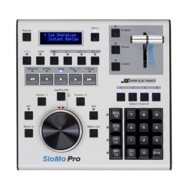 SloMoPro™ USB ima profesionalne tipke za transport, prilagođeni optički kodirani JLC jog kotačić sa shuttle prstenom, visokokvalitetnu T-traku za usporeno kretanje, čitljiv 2 x 16 VF zaslon, numeričku tipkovnicu pune veličine , i funkcijske tipke za brzi pristup.