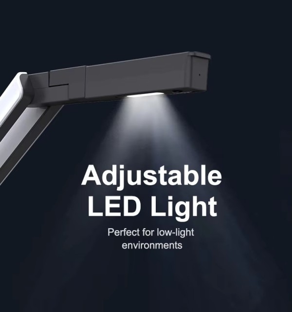 Joyusing V513 4K 2-u-1 kamera za dokumente pruža izvrsnu kvalitetu slike sa svojim 13.0MP CMOS senzorom i podržava 4K razlučivost pri 30fps i 1080P pri 60fps za glatko i oštro strujanje videa. Uključuje snažan digitalni zoom od 100X i značajku automatskog fokusiranja za fokusiranje bez napora, osiguravajući minimalne prekide pri prebacivanju između različitih materijala. Kamera pokriva A3 područje snimanja i opremljena je podesivim LED svjetlima za optimalno osvjetljenje. Podržava više sučelja kao što su USB tipa A, USB tipa C, HDMI i TF kartica za fleksibilno povezivanje. Bilo da se koristi s računalom ili bez njega, ovaj fotoaparat osigurava jednostavno preuzimanje softvera i radi besprijekorno. Stalak s više zglobova dizajniran je za izdržljivost i jednostavno zatezanje, osiguravajući pouzdanu izvedbu za tešku svakodnevnu upotrebu.
