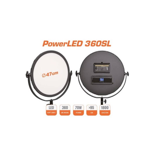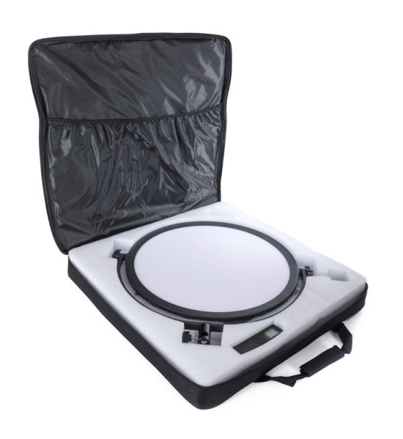 Riječ je o kružnom mekanom LED svjetlu promjera 47 cm, pogodnom za rad s fotografijama i videom. Snage je 70 W i intenziteta 1800 lx/ms sa 360 LED žarulja. Intenzitet svjetla može se podesiti od 0% do 100% u koracima od 1%. Temperatura boje može se podesiti od 3200 K do 5600 K u koracima od 100 K. Dolazi s daljinskim upravljačem, AC adapterom i može se napajati…
