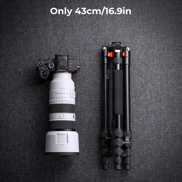 Kvalitetna vojna legura magnezija i aluminija, otpornost na koroziju; tronožac s kuglastom glavom teži samo 3,30 lbs, može se okrenuti za 180° i sklopiti na 16,5'', lako ga je staviti u ruksak ili kovčeg na putovanju.