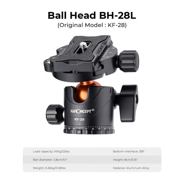 - * 【360° PANORAMA】Težina stativa je 1,5 kg. Velika metalna loptasta glava od 28 mm pruža nosivost od 10 kg, može se rotirati za 360 stupnjeva, što pomaže proširiti raspon aktivnosti dslr fotoaparata pri panoramskom snimanju.
