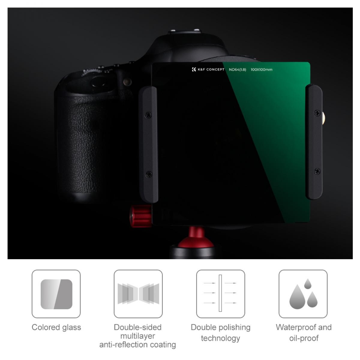 K&F Concept 100×100×2mm Full ND64 kvadratni filter pruža smanjenje svjetla od 6 koraka za glatke duge ekspozicije, bogatu točnost boja i uravnoteženo snimanje pri dnevnom svjetlu. Izrađen od vrhunskog japanskog optičkog stakla s 20-slojnim višeslojnim otpornim premazom, minimizira odbljeske, duhove i refleksije, a istovremeno nudi izdržljivu zaštitu od ogrebotina, vode, ulja i prašine. Dizajniran za profesionalce, ND64 filter osigurava istinski neutralne boje bez IR kontaminacije i odgovara standardnim držačima kvadratnih filtera od 100 mm, uključujući Cokin Z seriju.