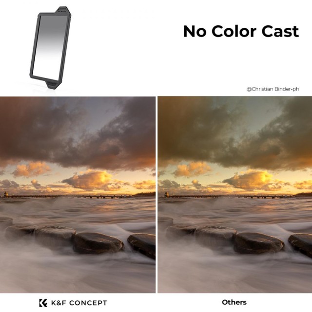K&F Concept tvrdi GND8 kvadratni filter dimenzija 100×150×2 mm ima nagrađivanu zaštitu leća, vrhunsko AGC optičko staklo s 36-slojnim premazima i idealan je za balansiranje svijetlog neba i tamnijeg prednjeg plana. Uključuje zaštitni okvir i torbicu za pohranu od PU kože.