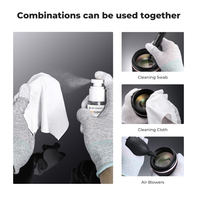 K&F Concept sprej i komplet za njegu sredstva za čišćenje objektiva od mikrovlakana, nezapaljivo sredstvo za čišćenje objektiva fotoaparata i otopina za čišćenje digitalnih senzora, za obložene leće, dalekozore, objektive, kamere i naočale