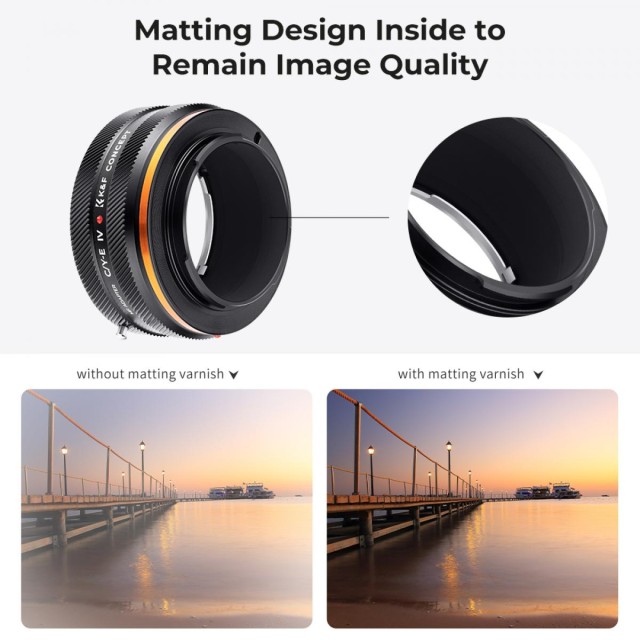 Visokoprecizna izrada - S ovim adapterom, objektiv i fotoaparat mogu se čvrsto i glatko spojiti putem bajonetnog nosača, što omogućuje podesivo fokusiranje objektiva Contax/Yashica (C/Y) na vašem Sony E-mount fotoaparatu.