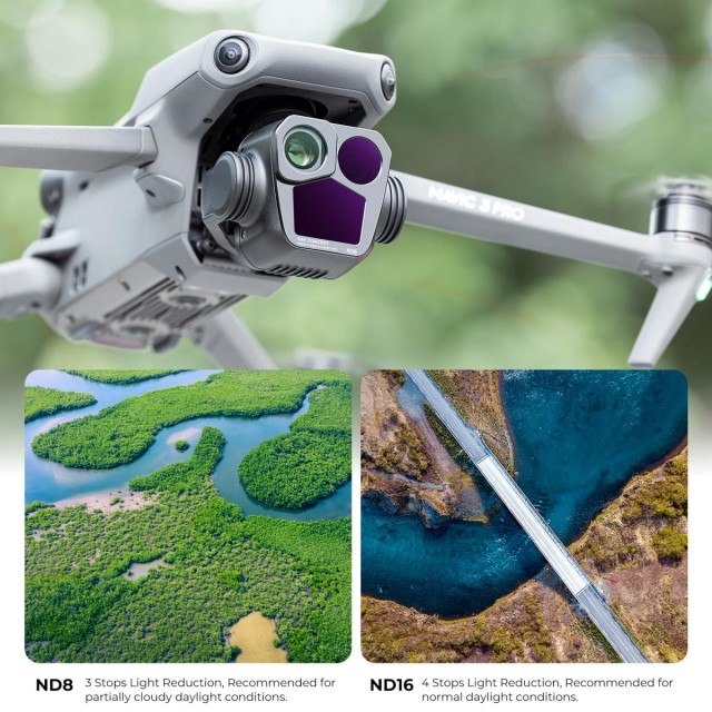 - * 【Lagan i siguran za gimbal】CPL: 6,9 g; ND: 5,4 g. K&F Concept lagani dizajn okvira osigurava da svaki okvir filtera prolazi kroz rigorozan lagani test, bez negativnih učinaka na vaš DJI Mavic 3 Pro gimbal.