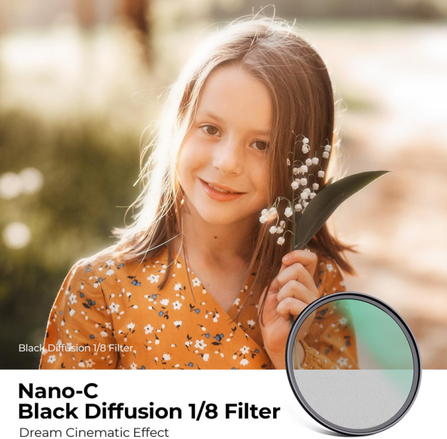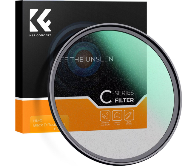 K&F Concept 46mm C Series Black Mist 1/8 filter: Ultra tanko 3,3 mm višeslojno japansko AGC staklo s zelenim premazom za suptilnu filmsku difuziju i sanjivi sjaj u svjetlu.