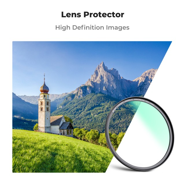 Magnetski MCUV filtar serije K&F 52MM C sadrži neodimijske magnete za brzu ugradnju, vrhunsko japansko optičko staklo s 18-slojnim premazom protiv refleksije i ultratanki aluminijski okvir za smanjenje refleksije i sprječavanje vinjetiranja.