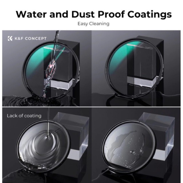 Profilni okvir filtra olakšava zavrtanje i odvrtanje filtra. Tanki aluminijski okvir - 3,3 mm, protiv vinjetiranja Ugrađeni prednji navoj omogućuje pričvršćivanje dodatnih dodataka na filtar. Izrađen od najkvalitetnijeg optičkog stakla, zahvaljujući kojem je propusnost svjetlosti puno veća. Filtar ima poseban premaz za smanjenje blještanja i poboljšanje snimljenih fotografija. Filter je također prekriven premazom koji se odlikuje visokom otpornošću na ogrebotine i mehanička oštećenja. Premaz olakšava čišćenje filtera i sprječava prekomjerno privlačenje prašine, peludi i drugih vrsta onečišćenja. dobra vrijednost za novac