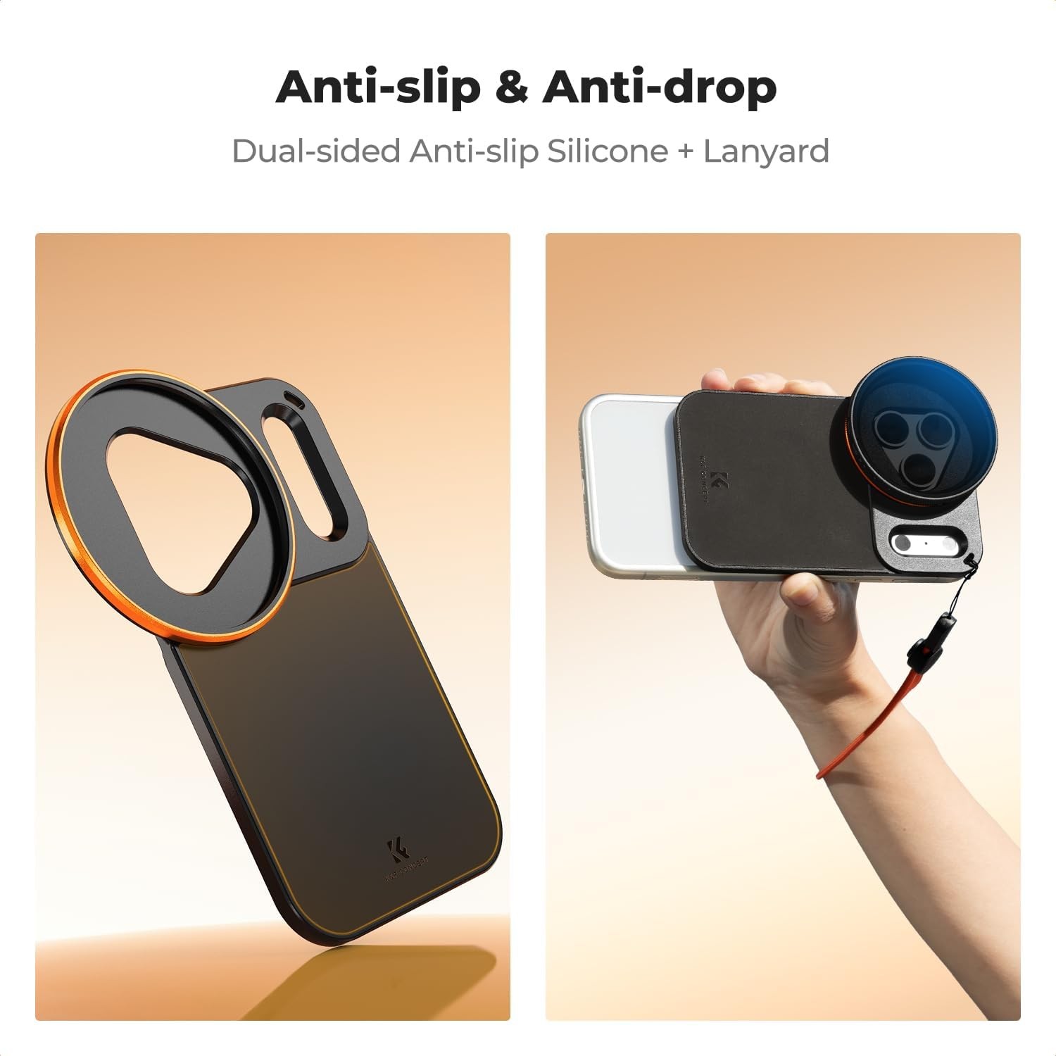 Nadogradite fotografiju na svom iPhoneu 17 Pro Max s K&F 58 mm uvrtnim Magsafe dvostranim magnetskim držačem filtera . Izrađen posebno za iPhone 17 Pro Max, trokutasti izrez za objektiv i pravokutni Deco otvor savršeno se poravnavaju s modulom objektiva, bljeskalicom i antenama, sprječavajući propuštanje svjetla i smetnje signala, a istovremeno održavajući kameru potpuno funkcionalnom.