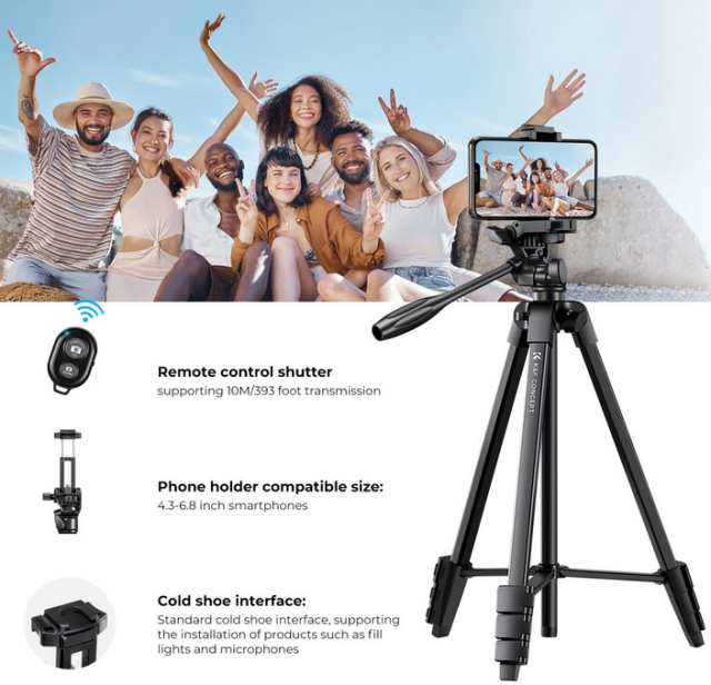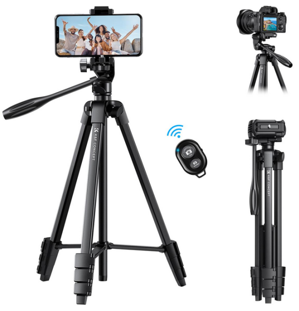 K&F 59,4''/1,5m aluminijski putni stativ je lagan i svestran stativ dizajniran za pametne telefone i fotoaparate. Teži samo 0,61 kg, ima podesivu visinu (17-60 inča), panoramsko snimanje od 360° i kompaktan sklopivi dizajn (42 cm) s Bluetooth daljinskim upravljačem, što ga čini savršenim za putovanja i fotografiranje na otvorenom.