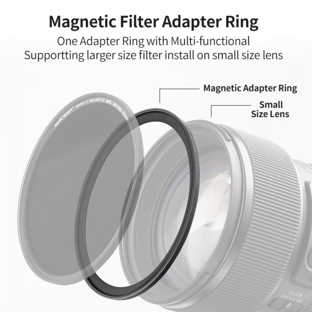 K&F 62-77 mm magnetski adapterski prsten objektiva. Veći filtri mogu se prilagoditi lećama s manjim navojima