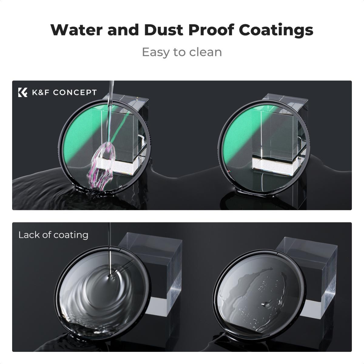 Izrađeni od vrhunskog uvoznog japanskog AGC optičkog stakla, filteri pružaju visoke razlučivosti s izvrsnim prijenosom svjetlosti i minimalnim utjecajem na točnost boja. Svaki filter ima napredne 28-slojne nano premaze koji pružaju vrhunsku otpornost na vodu, ulje, ogrebotine i refleksije - idealno za snimanje na otvorenom.