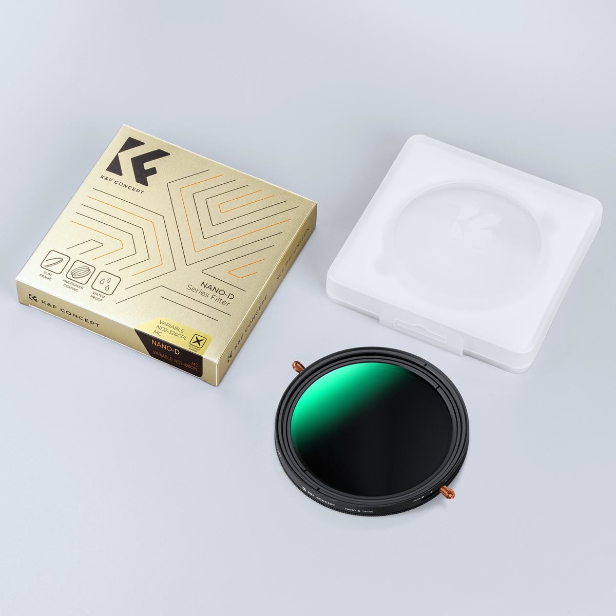 K&F Concept 67mm D Series CPL + Variable ND 2–32 filter je višenamjenski 2-u-1 filter za objektive koji kombinira kružnu polarizaciju i varijabilnu kontrolu neutralne gustoće u jednom, visokokvalitetnom filteru. Dizajniran za fotografe i snimatelje, smanjuje svjetlost od 1 do 5 stupnjeva, a istovremeno minimizira refleksije, poboljšava boju i kontrast te održava oštru, visokodefinitivnu kvalitetu slike bez efekta odljeva boja ili artefakata "X" križanja.