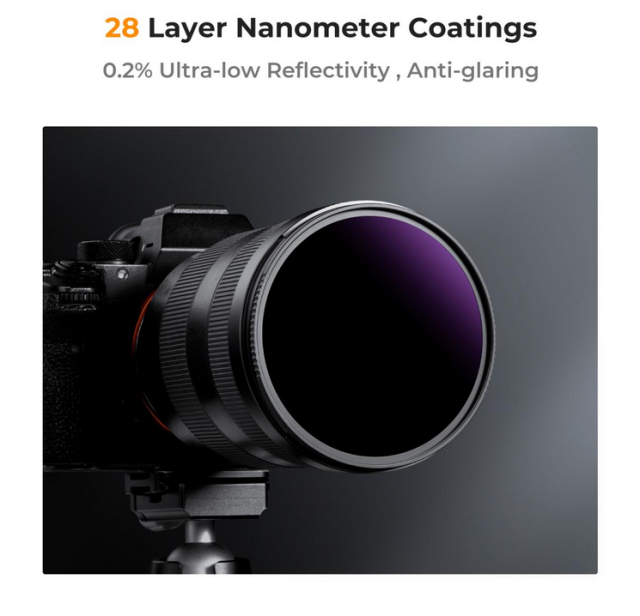 Filter K&F 72MM Nano-X Ultra ND1000000 dizajniran je za specijalizirane fotografske potrebe, uključujući solarnu fotografiju i snimke s produženom ekspozicijom. Ovaj filtar nudi impresivnih 20 stupnjeva smanjenja svjetla, što ga čini idealnim za snimanje zamršenih detalja sunca ili stvaranje dramatičnih efekata zamućenja kretanja. Izrađen od visokokvalitetnog optičkog stakla i s 28-slojnim nano premazom, pruža vrhunsku zaštitu od ogrebotina, vode, ulja i prašine dok smanjuje refleksije i duhove. Nazubljeni prsten filtra osigurava sigurno držanje, a njegov ultratanak, lagan aluminijski okvir pomaže u izbjegavanju vinjetiranja. Kompatibilan je sa svim objektivima s prednjim navojem od 72 mm.