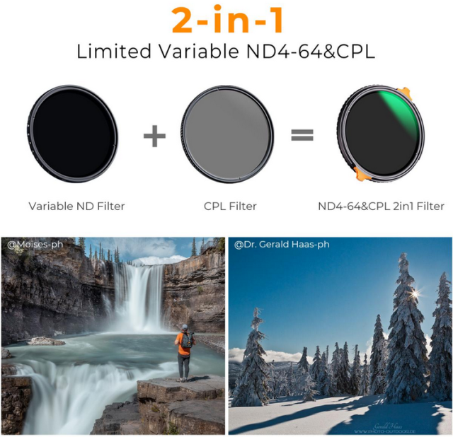K&F 72 mm ND4-ND64 promjenjivi ND i CPL filtar kombinira prednosti filtra neutralne gustoće (2-6 stupnjeva) i kružnog polarizirajućeg filtra u jednom. Savršen za podešavanje ekspozicije svjetla i uklanjanje odsjaja, poboljšava boju i kontrast za zadivljujuću pejzažnu fotografiju i videografiju bez rizika od neželjenih "X" križnih uzoraka.