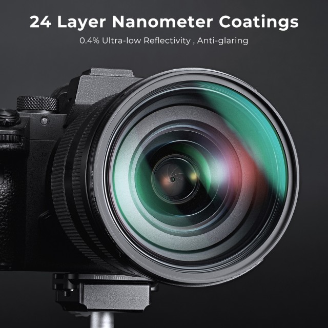 * 【Uvozno optičko AGC staklo】K&F Concept crni difuzijski filtar izrađen od uvezenog japanskog AGC optičkog stakla, dvostrani višeslojni slojevi do 84% propusnosti, osiguravajući kvalitetu slike i bez boje.