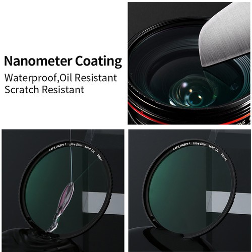 K&F Concept 82mm XU10 Ultra Slim B270 MCUV filter je visokokvalitetni UV zaštitni filter s L380 UV rezom, 18-slojnim višeslojnim premazom otpornim na UV zračenje i tehnologijom nano otpornosti. Njegov ultra tanki aluminijski okvir minimizira vinjetiranje, a istovremeno štiti objektiv od ogrebotina, vode i prašine.
