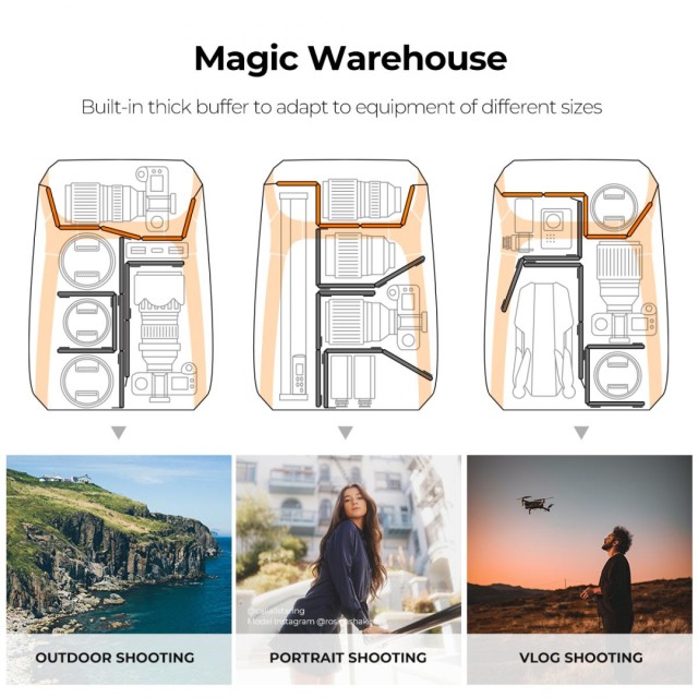 • 2 strane s više točaka za vješanje stvari, može se koristiti za držanje stabilizatora, stativa i boca itd.
