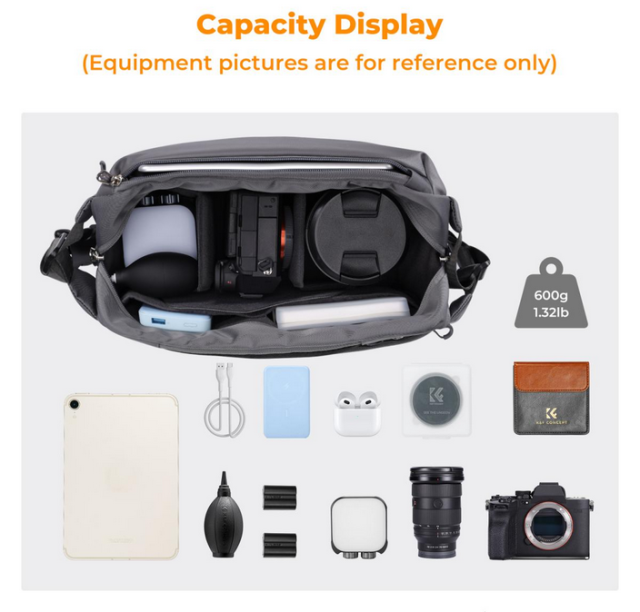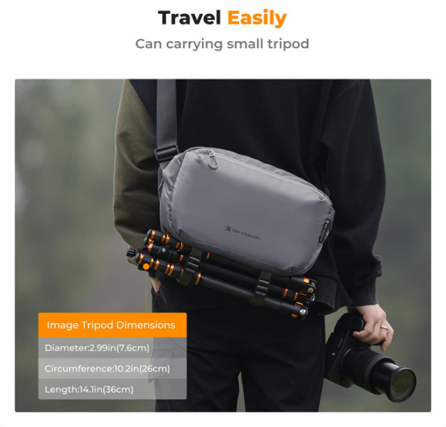 K&F Alpha Sling Bag 10L (siva) kombinira praktičnost, udobnost i sigurnost u elegantnom, višenamjenskom dizajnu. S kapacitetom od 10 L , ova je torba kompaktna, ali dovoljno prostrana da primi jedan fotoaparat i dva objektiva, zajedno s osnovnim dodacima i osobnim predmetima.