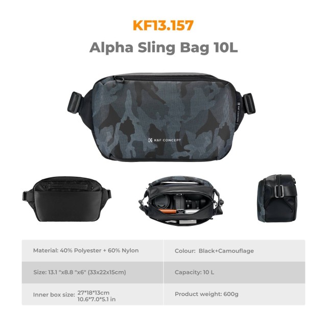 * 【Više načina za nošenje torbe】S veličinom od 33*22*15cm / 13.1"*8.8"*6", K&F Concept Alpha Camera Sling Bag ima kapacitet od 10L i lako prima jednu kameru i dva objektiva. S Zbog svestrane funkcije, ova torba za naramenicu za kameru može se koristiti kao torba za nošenje preko ramena, torba preko ramena, torba oko struka, torba za prsa ili ručna torbica.