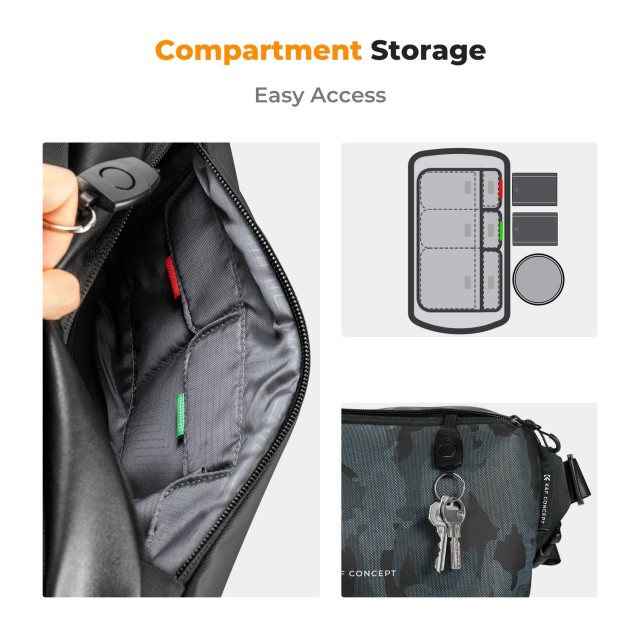 * 【Dobro organiziran pretinac】K&F Concept Alpha Camera Sling Bag ima čak 3 sloja pretinaca u koje možete odvojeno držati svoje kamere, dodatke i osobne stvari. Čist, dobro organiziran i jednostavan pristup svakoj stavci.