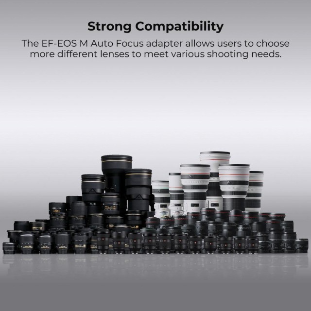 * Široka kompatibilnost. Odijelo za D/SLR objektive Canon EOS EF EF-S i Canon EOSM EOSM2 EOSM3 EOSM5 EOSM6 EOSM10 EOSM50 EOSM100 EOSM50II EOSM6II EOSM200 i korisnicima EOS M fotoaparata pruža veći izbor objektiva.