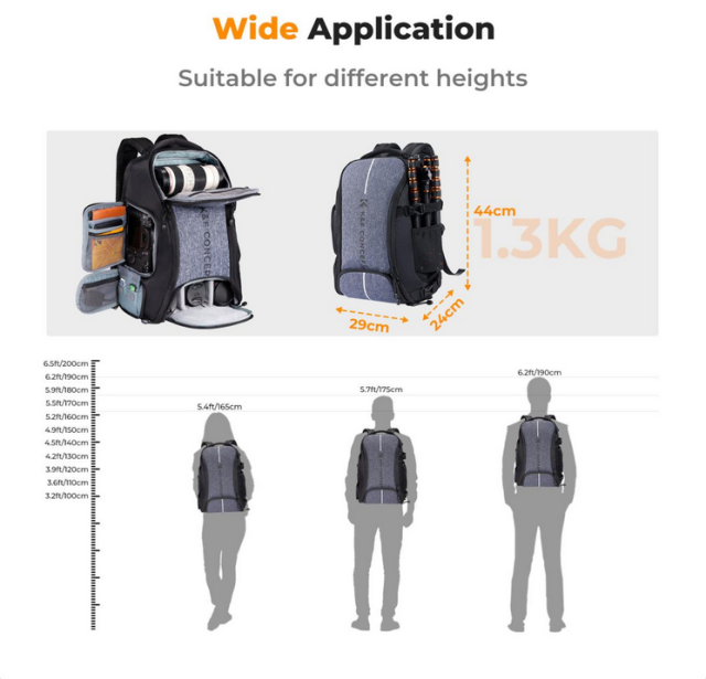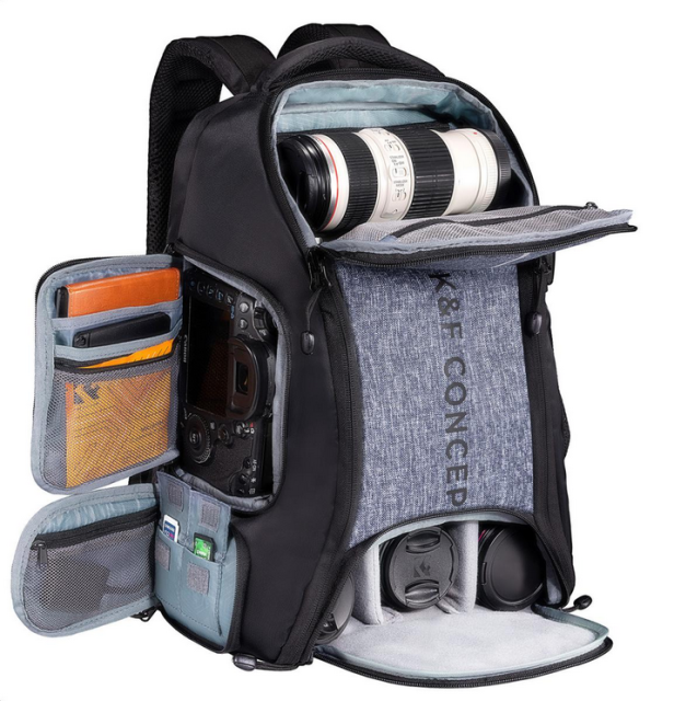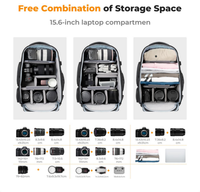K&F Beta ruksak 25L svestrana je i prostrana torba za fotoaparat dizajnirana za fotografe u pokretu. S dimenzijama od 17,3 x 11,8 x 9,4 inča i kapacitetom od 25 litara, ovaj ruksak nudi troslojnu pregradu, pružajući prilagodljivu organizaciju vaše opreme. Gornji pretinac je prikladan za objektiv od 200 mm ili dron Mavic Air 2, srednji pretinac može staviti jednu kameru i dva standardna objektiva ili dvije kamere, a donji pretinac je dizajniran za tri standardna objektiva ili jednu kameru i jedan objektiv. Unutarnja podstava može se prilagoditi vašim specifičnim potrebama.