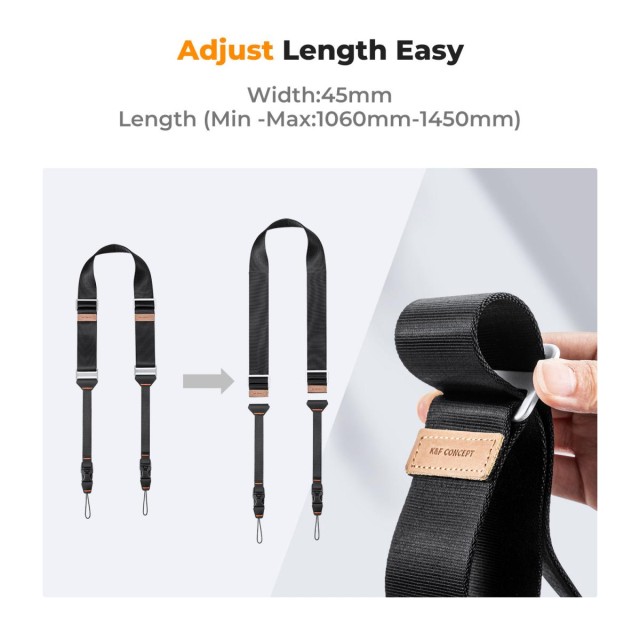 K&F Concept 45 mm remen oko vrata s brzim otpuštanjem za fotografe, podesivi remen za nošenje preko ramena za fotoaparat kompatibilan za Nikon Canon Sony Olympus DSLR fotoaparat, crna. UTX sigurnosni karabiner štiti kameru od opasnosti od slučajnog pada i poboljšava sigurnost