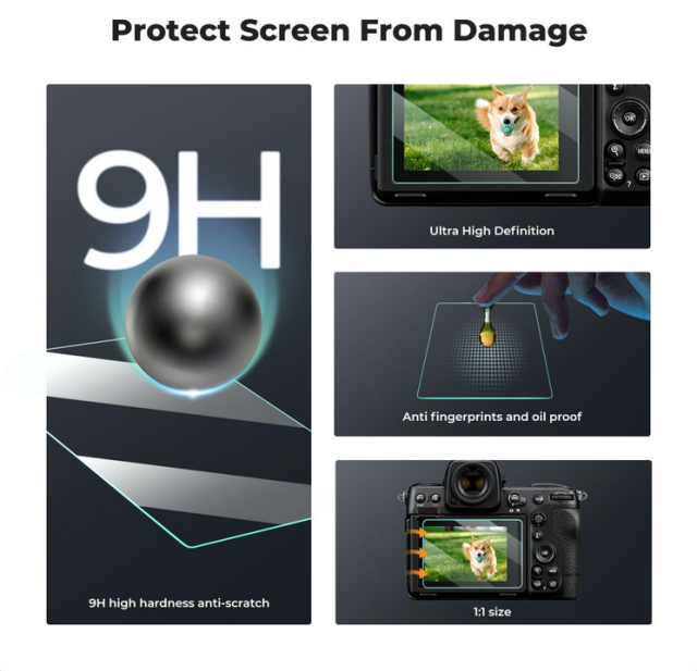 Ovaj K&F komplet zaštitnika zaslona dizajniran je za fotoaparate Nikon Z9 i Z8, uključujući 3 zaštite zaslona, 3 gornje zaštite zaslona i krpu za usisavanje.